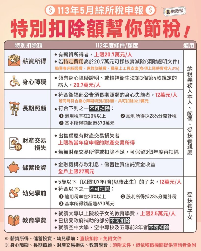 - 特別注意:「所得稅新制」的適用為2025年申報期間(申報113年所得),今年並不適用。